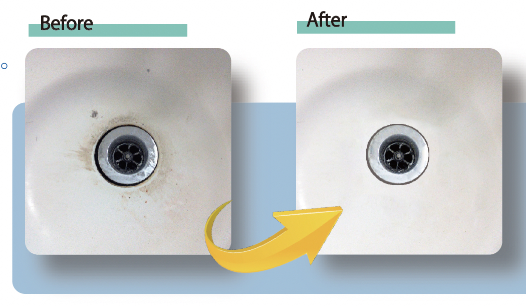 ガラス繊維と特殊な樹脂でできた刃で少ない力で汚れをこすり落とします。