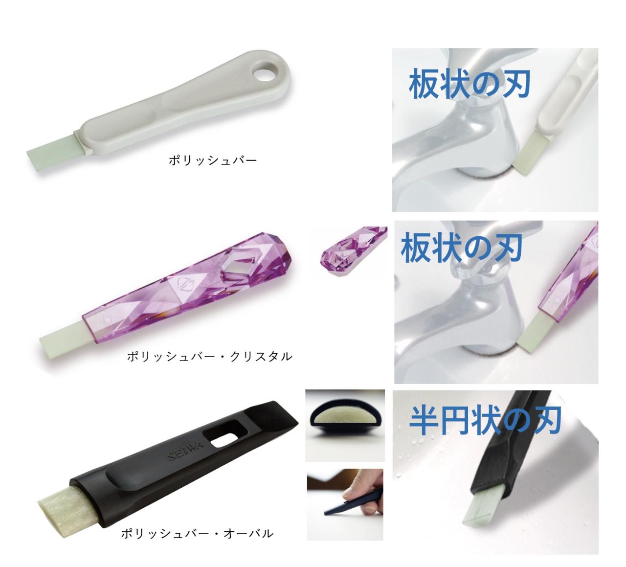 ポリッシュバーとポリッシュバー・クリスタルはキワや隅など細かい場所にフィットします。ポリッシュバーオーバルは曲面や平面など広い場所でお使いいただけます。